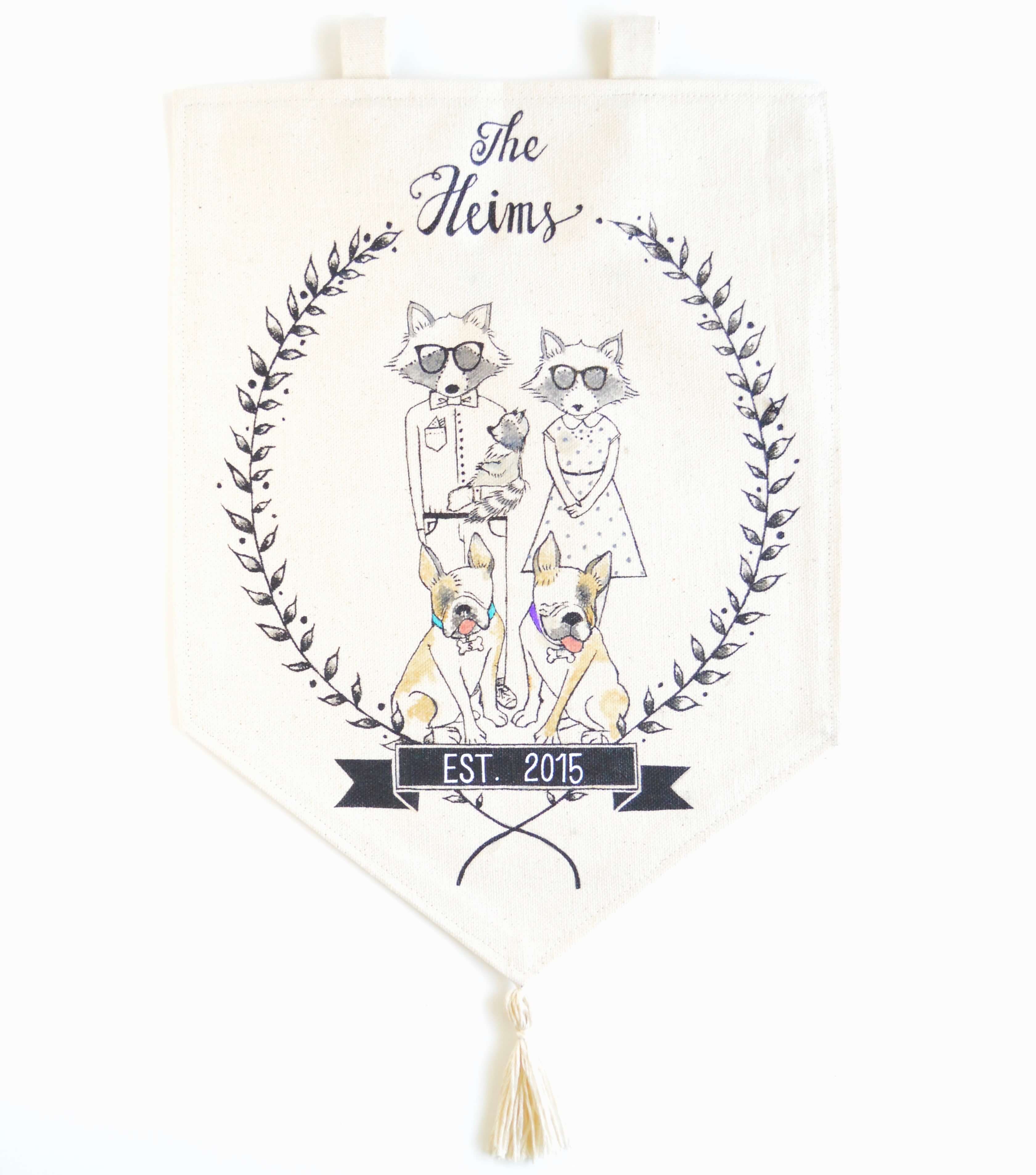 タペストリーのリース部分の配色はポールさんが居酒屋店主から貰った高島屋のバッグからインスピレーションを受け、旅先で出会ったキューピー人形やコーギーちゃん、シャチホコや焼き鳥屋で食べさせられたジャコウネコ氏(!)などをこっそり配置してます。