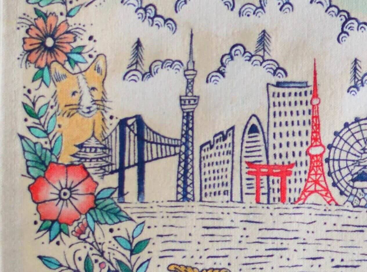 靴や帽子等の場合は既製品に絵付けをしていますが、タペストリー、ポーチ、一部トートなどの布小物系は、本体も私が作っています。