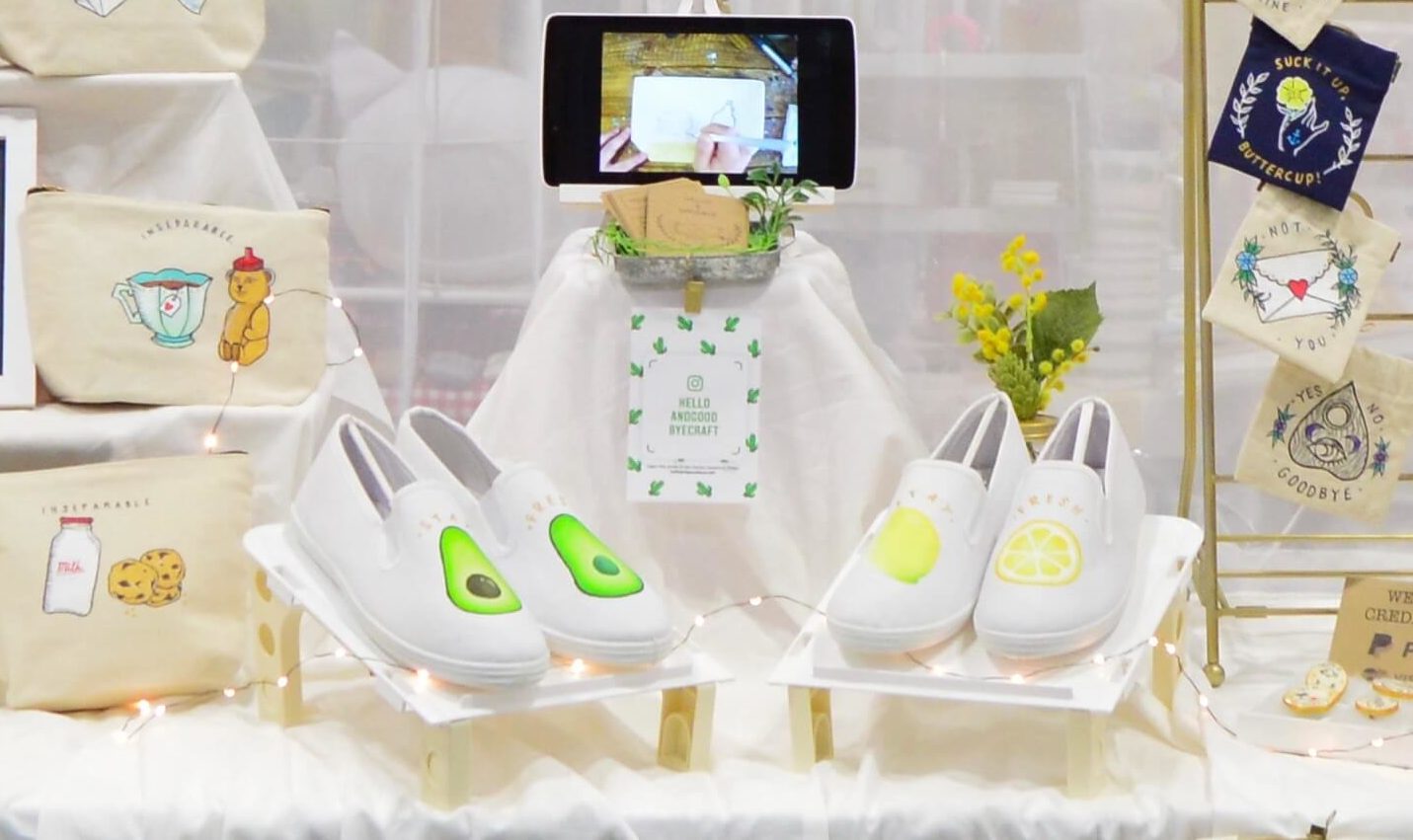 日本と言うかminneのカラーだと思いますが、うさぎ、クマ、りす等の愛くるしい動物モチーフ、お花のアクセサリー、キャンディーやお寿司柄の食べ物をあしらった小物…など、可愛いらしい物を売っているブースが多い印象でした!