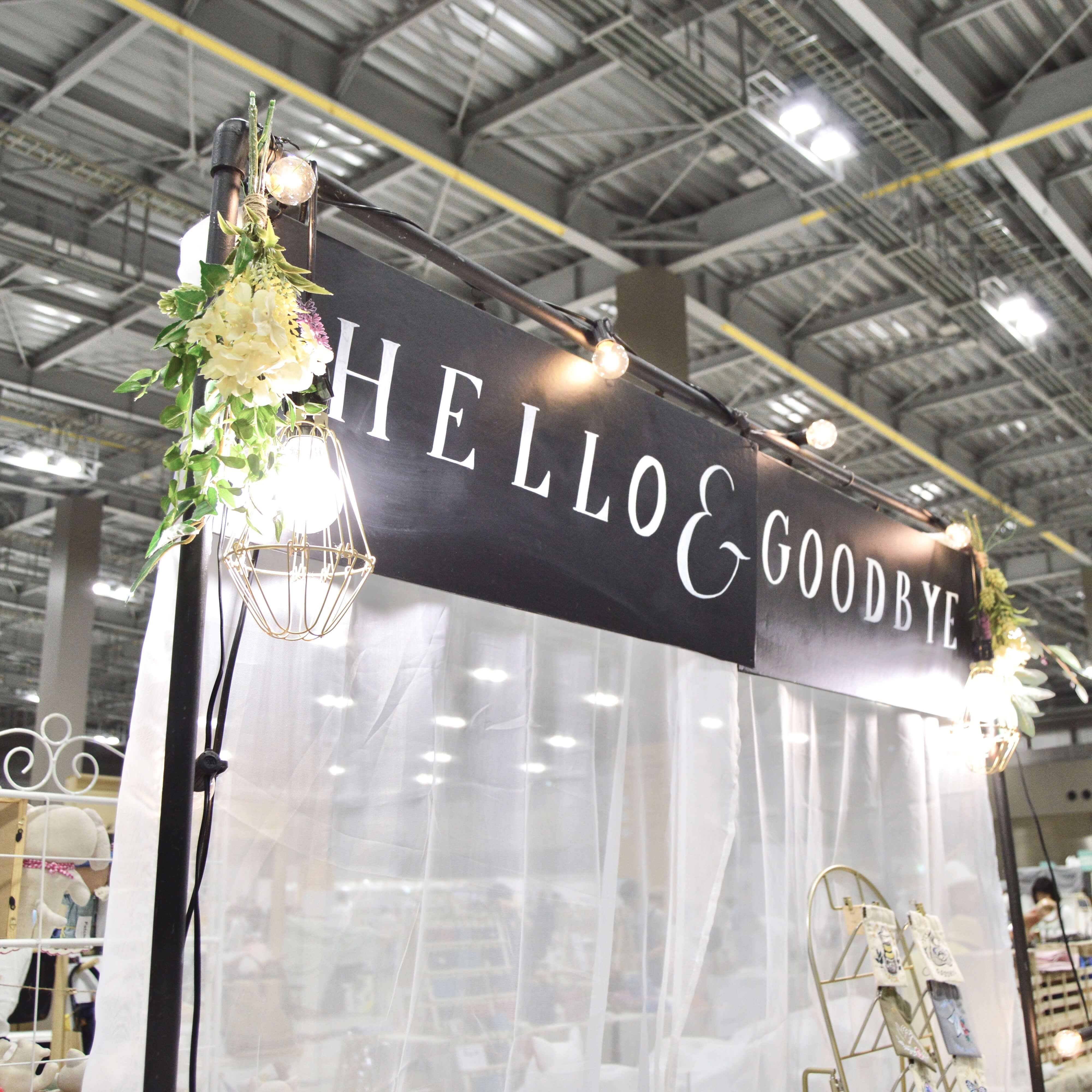 HELLO& GOODBYEの看板はダイソーで買った発泡スチロールの板に黒板シートを貼り付け、チョークペンで描きました。