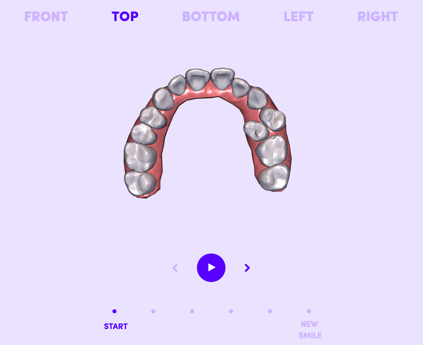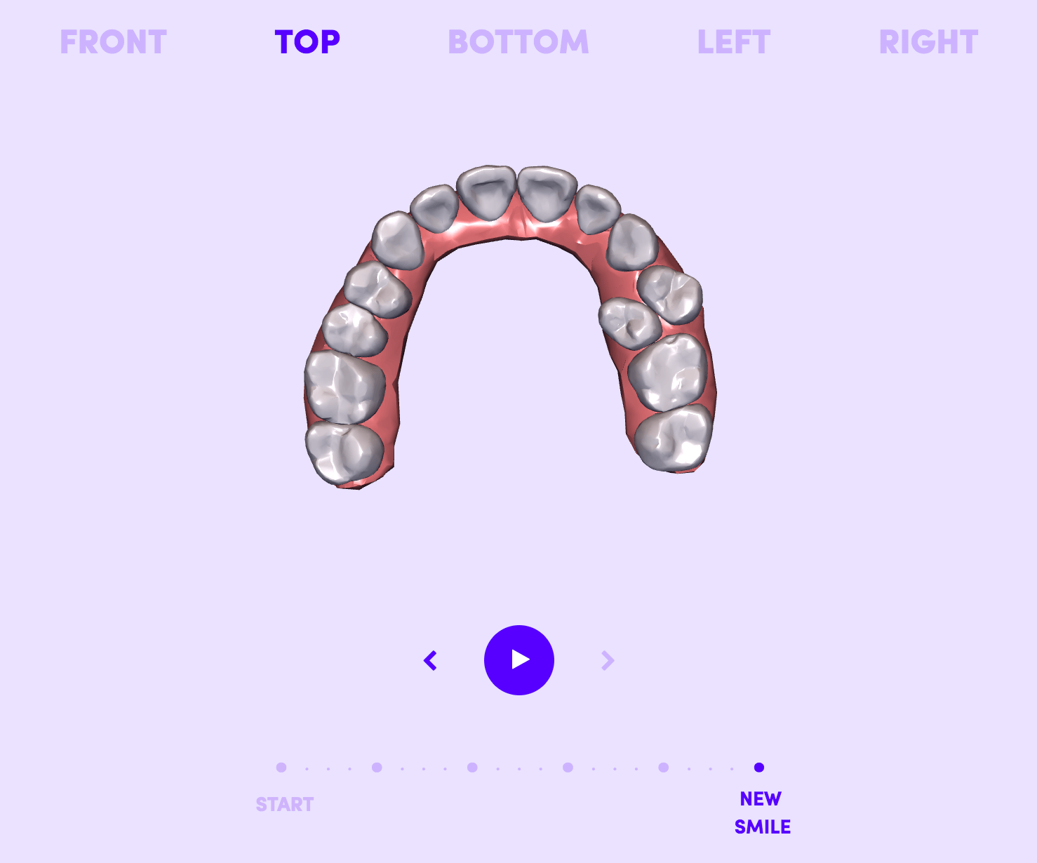 TOP/ BOTTOM / LEFT / RIGHT をそれぞれクリックする事で、違うアングルから歯並びを確認できます。
